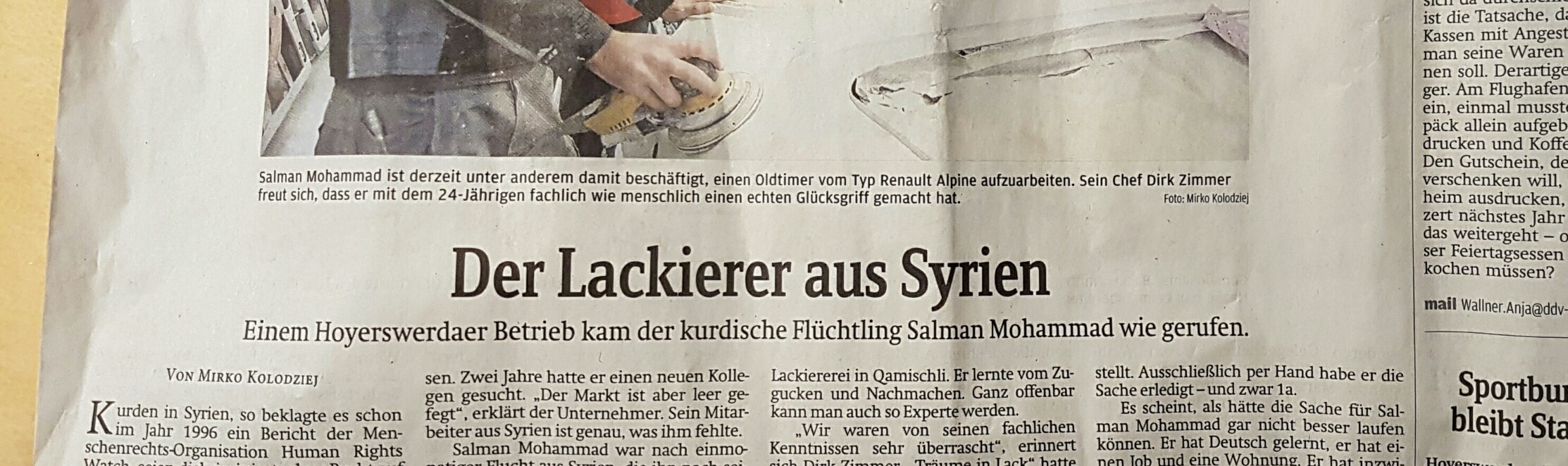 Einer unserer beiden syrisch-kurdischen Mitbewohner (seit Mai 2015) ist jetzt eine „SZ-Geschichte, die inspiriert und motiviert“ – in der neuen Rubrik „Gut zu wissen“ für das Gute auf der Welt. Salman Mohammad war nun der Aufmacher auf den Hoyerswerda-Seiten der „Sächsischen Zeitung“: „Der Lackierer aus Syrien. Einem Hoyerswerdaer Betrieb kam der kurdische Flüchtling Salman Mohammad wie gerufen.“