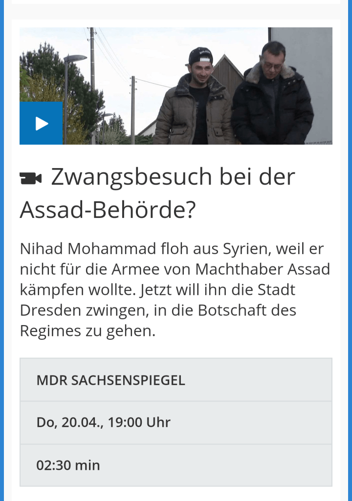 Das ist dann dem "Sachsenspiegel" einen Besuch bei uns im Dorf wert. Zwei syrische Kurden haben zwei Jahre bei uns gewohnt, der dritte – jüngerer Bruder des einen – ist seit fünf Monaten bei uns und inzwischen mit der Einrichtung seiner Wohnung in Dresden beschäftigt. Im Unterschied zu seinem älteren Bruder erhielt er nur "subsidiären Schutz", wofor es eigentlich keinen sachlichen, sondern nur innenpolitische Gründe in Deutschland gibt. Nun schauen wir mal, was der Bürokratie nun einfällt. Nur eines ist klar: Zur syrischen Botschaft geht Nihad nicht, da das, wie der Flüchtlingsrat im "Sachsenspiegel" erklärte, der denkbar dümmste Weg wäre…