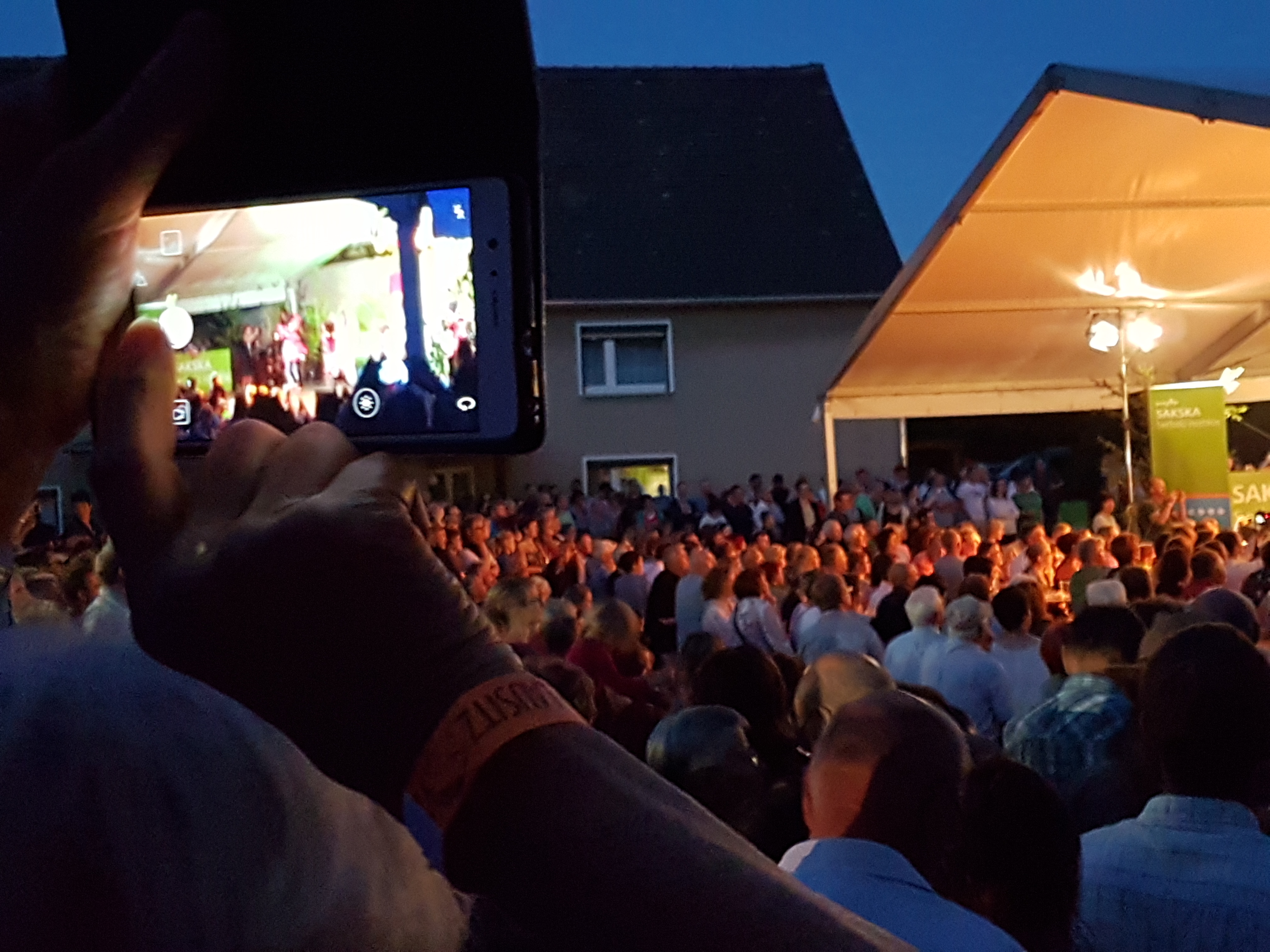 Das alle zwei Jahre stattfindende internationale Festival „Lausitz – Łužica“ des Sorben-Dachverbandes Domowina mit Dutzenden Ensembles aus Deutschland, Europa und der Welt, darunter allein rund 15 sorbische, ist eine logistische und kulturpolitische Meisterleistung. Erstmals habe ich am Freitag die Festival-Station Drachhausen (Hochoza) nördlich von Cottbus mitten im Wald erlebt – märchenhaft 😊. Hier wird an vier Plätzen gefeiert, in Crostwitz an sieben. Wir waren im Bus mit der sorbischen Volkstanzgruppe Schmerlitz (Smjerdźaca) mitgefahren – und um dreiviertel drei morgens wieder zuhause 😎.