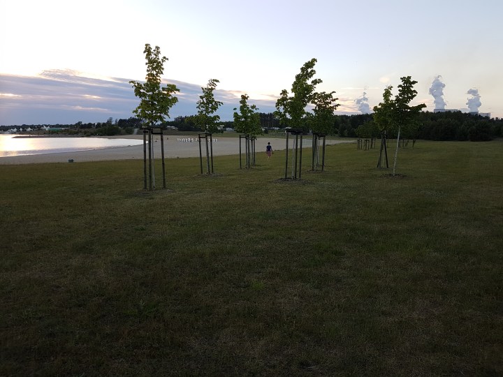 Nebenbei: Wir sind ja nicht doof. Die Seen wurden nicht zur Volksbeglückung angelegt. Sondern weil es am billigsten ist, die Tagebaulöcher mit Wasser vollaufen zu lassen. Unsere Sommerfrische mit kleinerer Ostsee-Kopie und Meeresrauschen-Imitat ist sozusagen die Kollateralfreude 😎.
