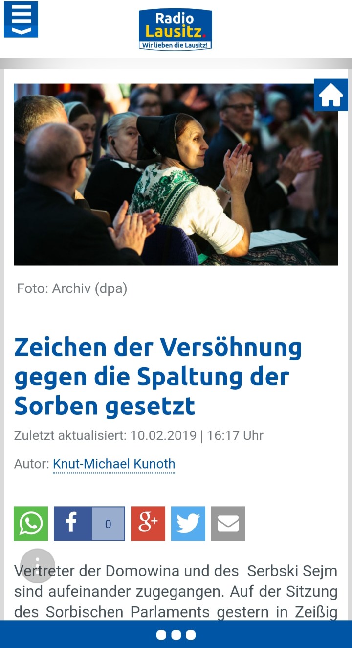 Der Regionalverband der Domowina ist nach dem evangelischen Pfarrer Handrij Zejler benannt, der in Lohsa wirkte. Und es ist daher ein wirklicher Segen, dass wir heute den Gottesdienst mit einem evangelischen Pfarrer feiern durften, dem Superintendenten im – nun, ja, Ruhestand kann man das ja wohl nicht nennen, was Sie so machen, sehr geehrter Herr Pfarrer Vogel. Auch Sie haben schon, wie Handrij Zejler, auf Ihre Weise Geschichte geschrieben.