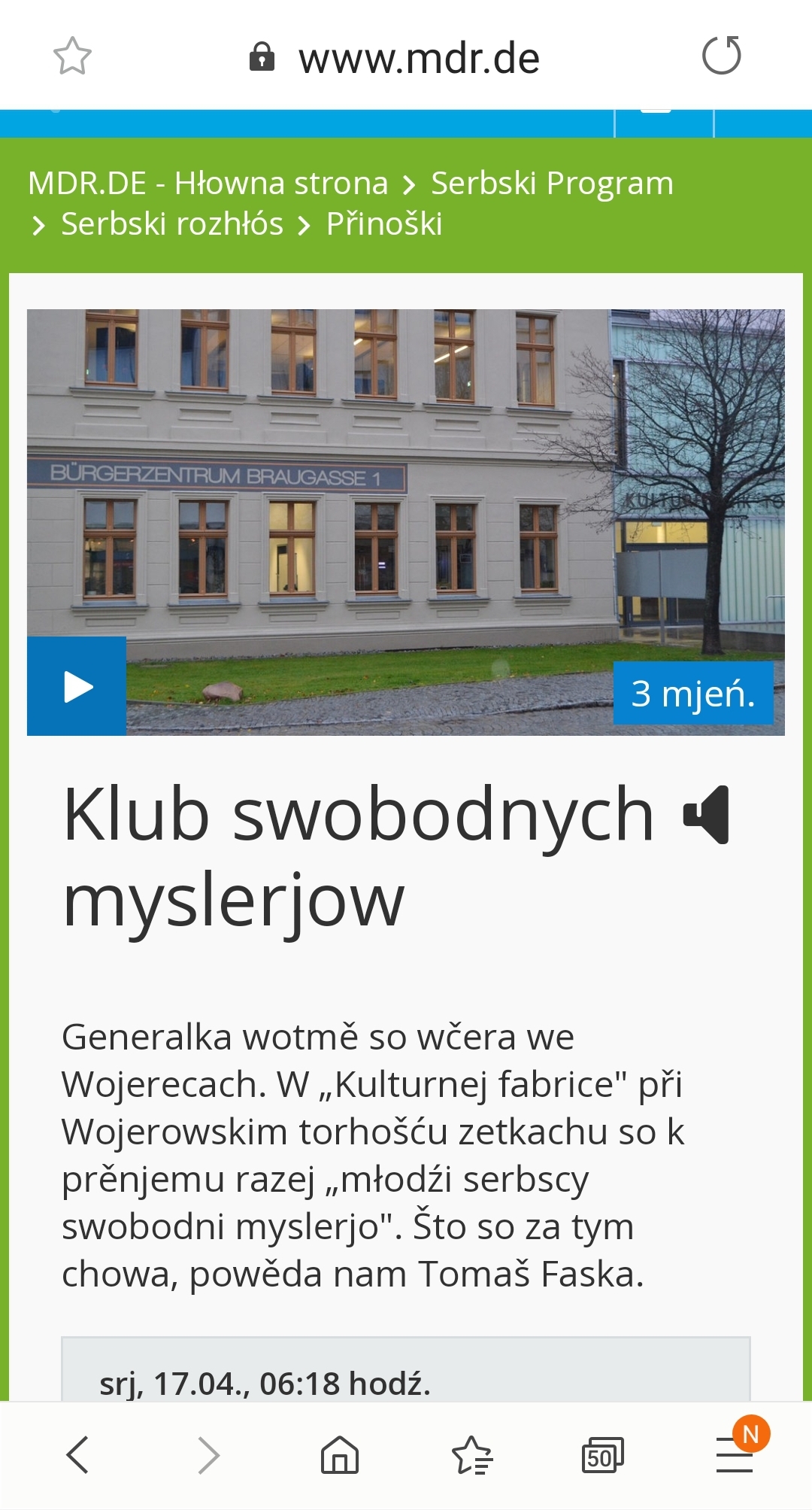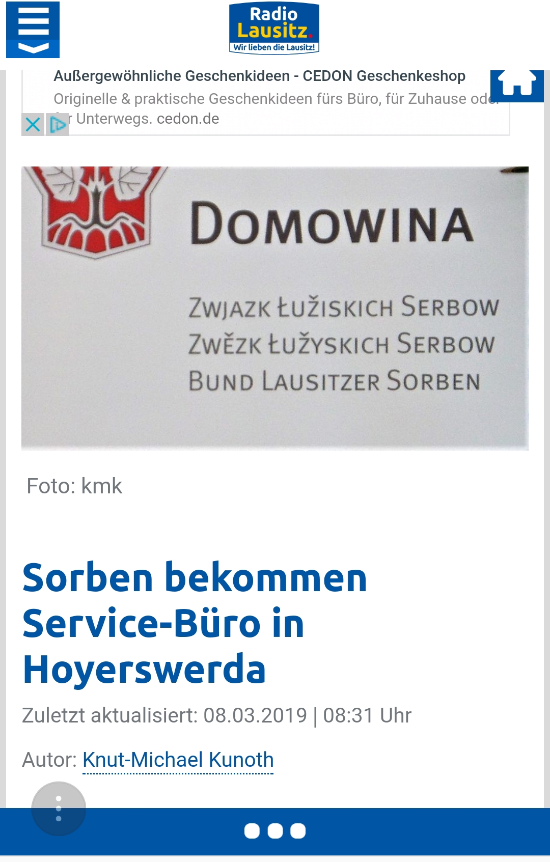 Meine Oma sagte immer gern: Das Leben ist ein ewiges Kommen und Gehen. Es gab eine Zeit, da ging das Sorbische, und zurzeit kommt es wieder. Damals erschien es nicht mehr modern, nun in der Epoche der Rückbesinnung auf die Verwurzelung im Regionalen ist es wieder anerkannt und geschätzt. Wir waren gestern auf einem Jazz-Abend in Zeißig, der junge Sänger kündigte seine nächsten Alben an: auf Englisch, deutsch und in erzgebirgischer Mundart. Und sagte, dass ihm das Mundart-Album das Wichtigste ist. So sieht der Trend der Zeit aus!